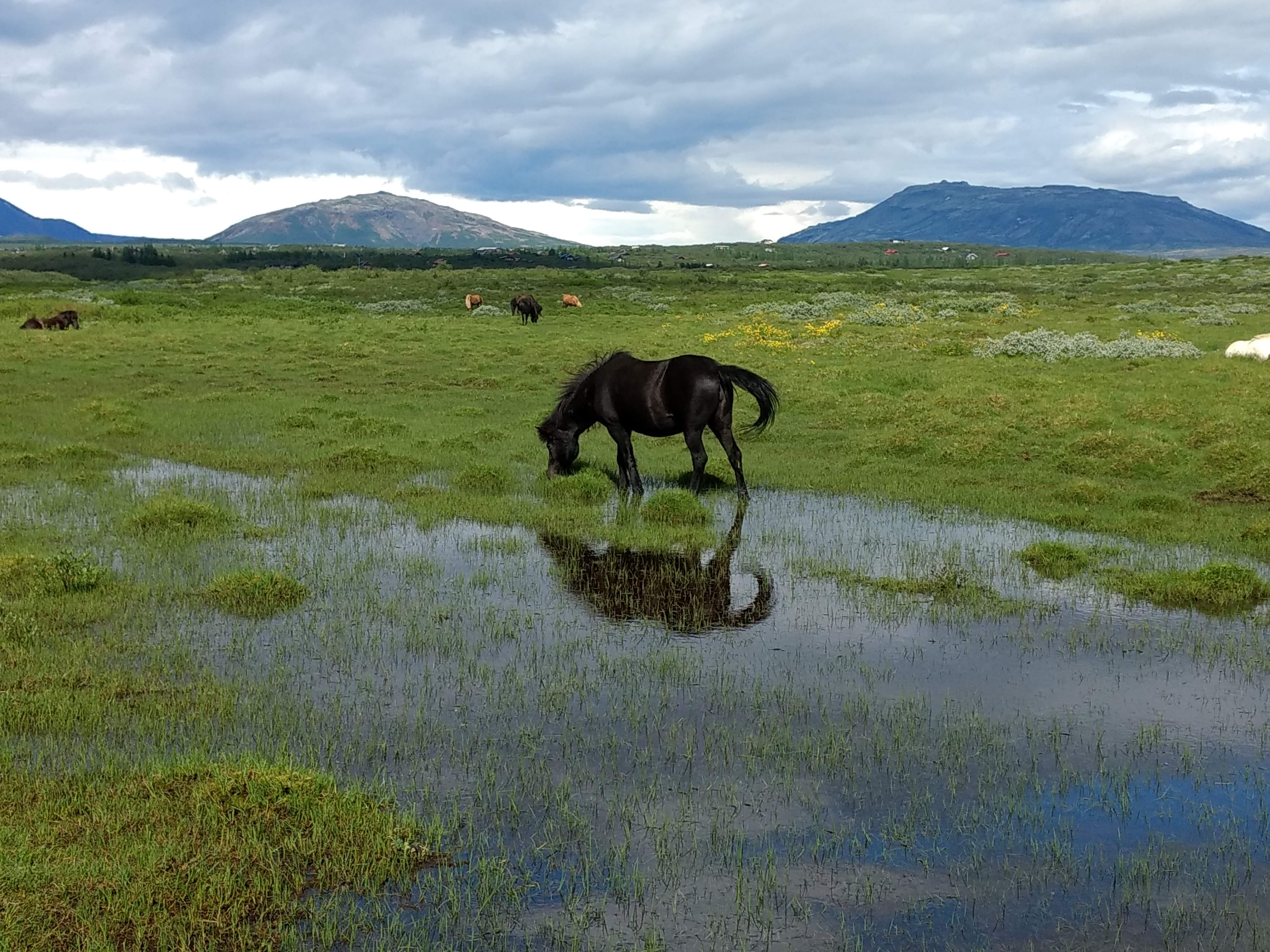 We left Þingvellir and headed to the Golden Circle to see the Geysir geothermal area and Gullfoss waterfall. Along the way we stopped for ice cream at a dairy farm and pulled over to get up close to Icelandic horses.